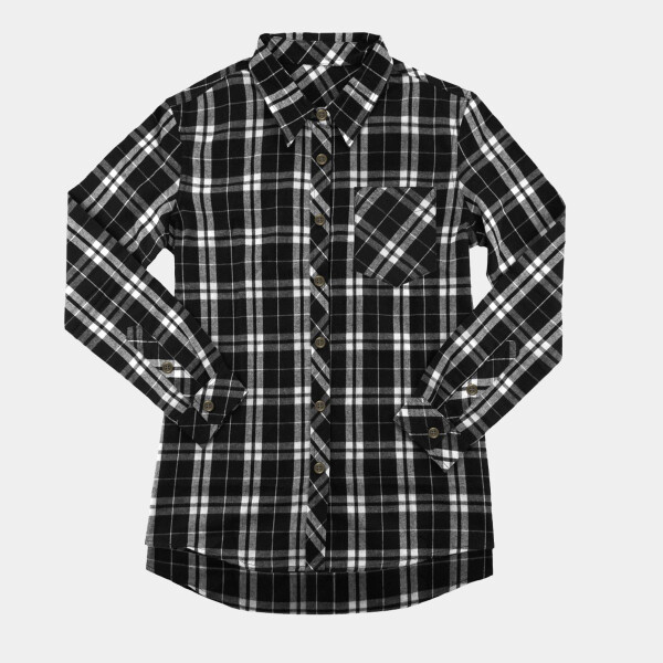 - Diagonal plaid on collar, front placket, pocket, cuffs & back yoke